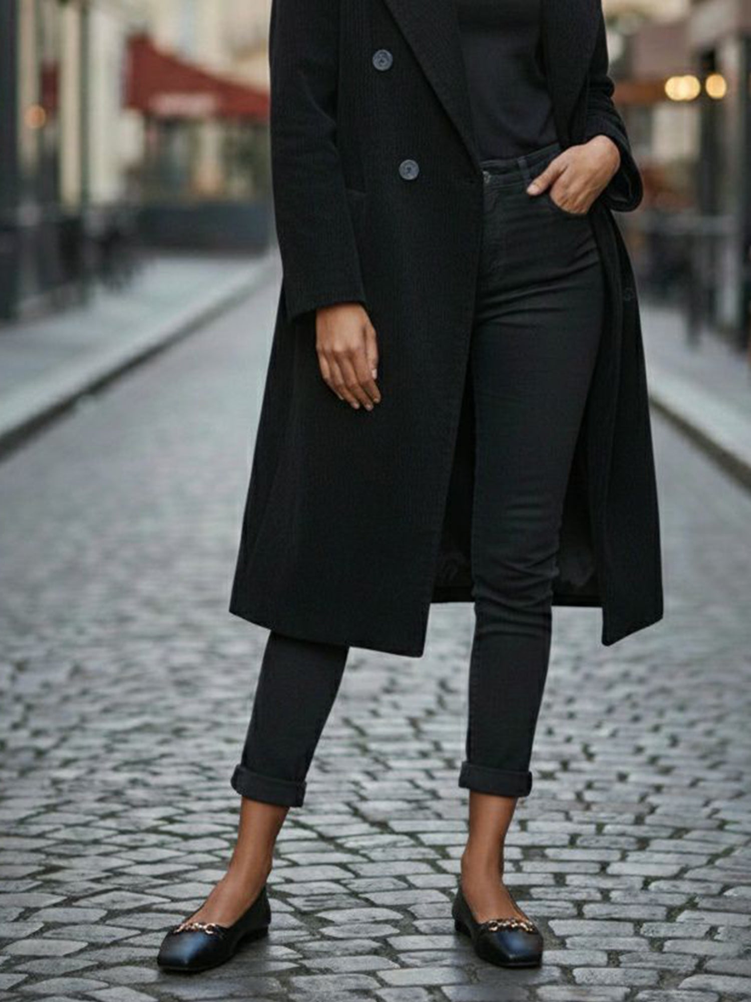 Ballerines classiques à bout carré avec un embout en métal doré.