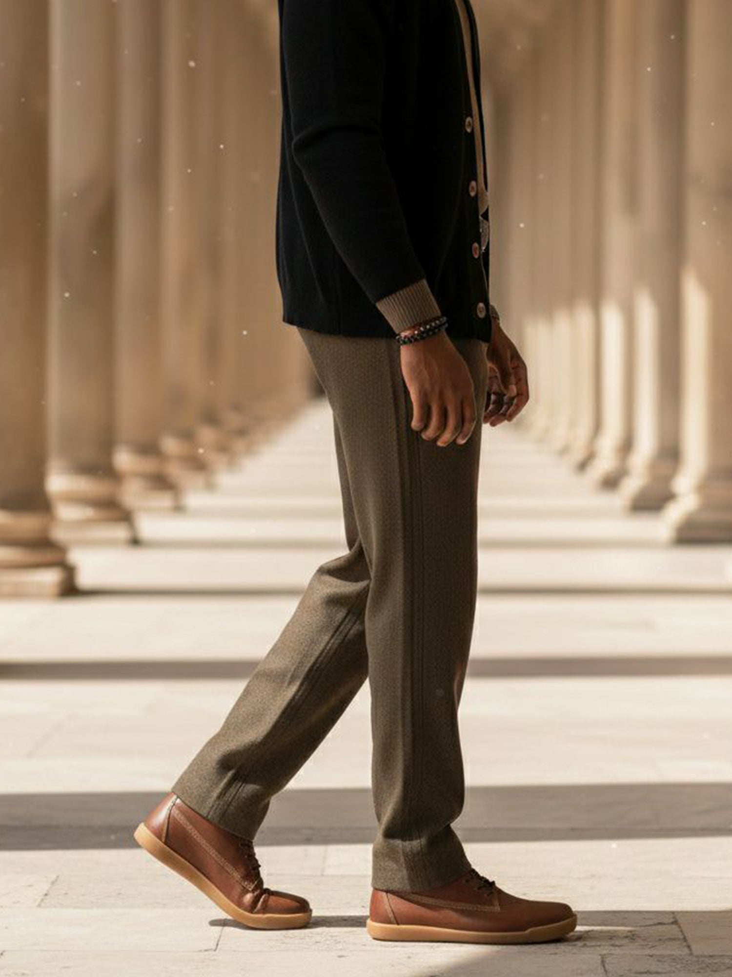 Made with smooth, matt-finish Italian vegan leather (69% biobased content) in a warm chestnut tone, paired with soft vegan suede lining at the collar, they feel familiar the moment you pull them on – but the experience underfoot is something else entirely. They’re also water-resistant, so they handle rain, showers, wet pavements, and autumn–winter weather without fuss.
