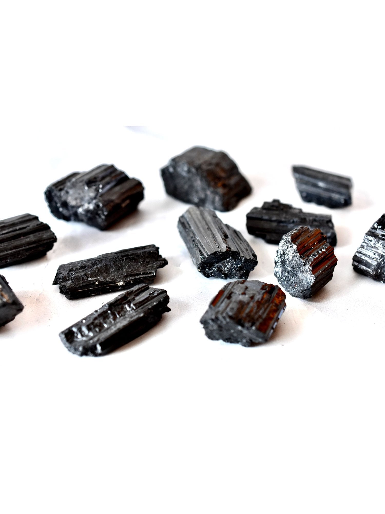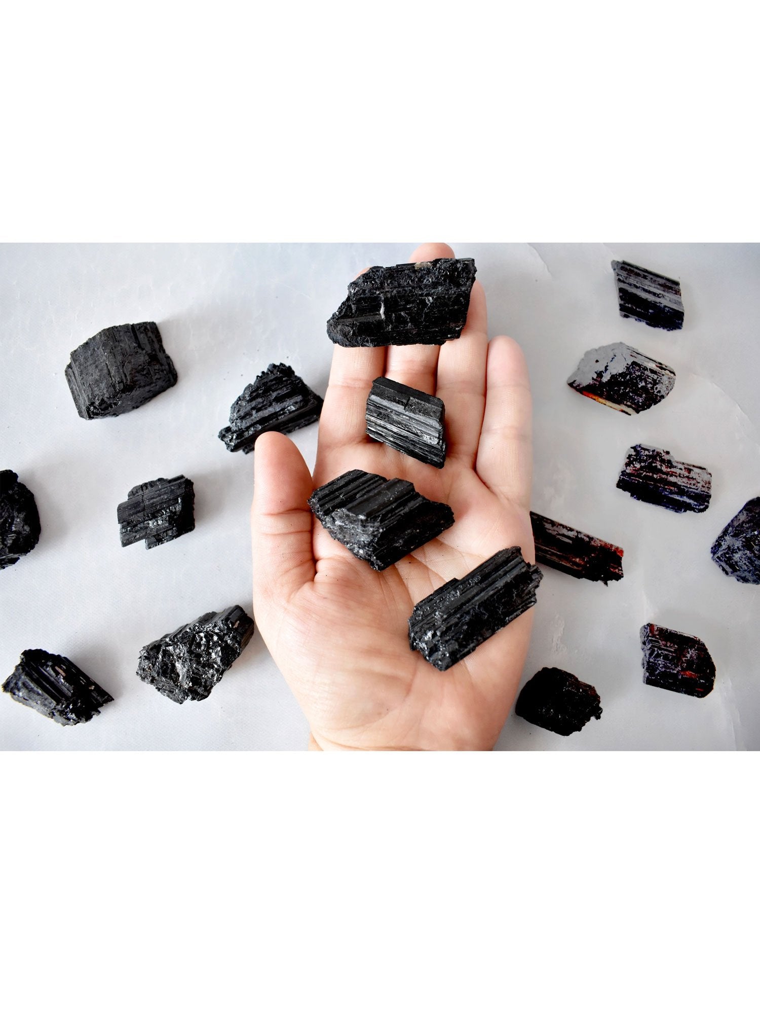 Small but mighty Raw Black Tourmaline crystals. Raw crystals means that they are rough around the edges and include inclusions of other stones such as quartz. Great for wire wrapping, using as a protection amulet, placed on a meditation altar, or to give as a gift to a friend or loved one.