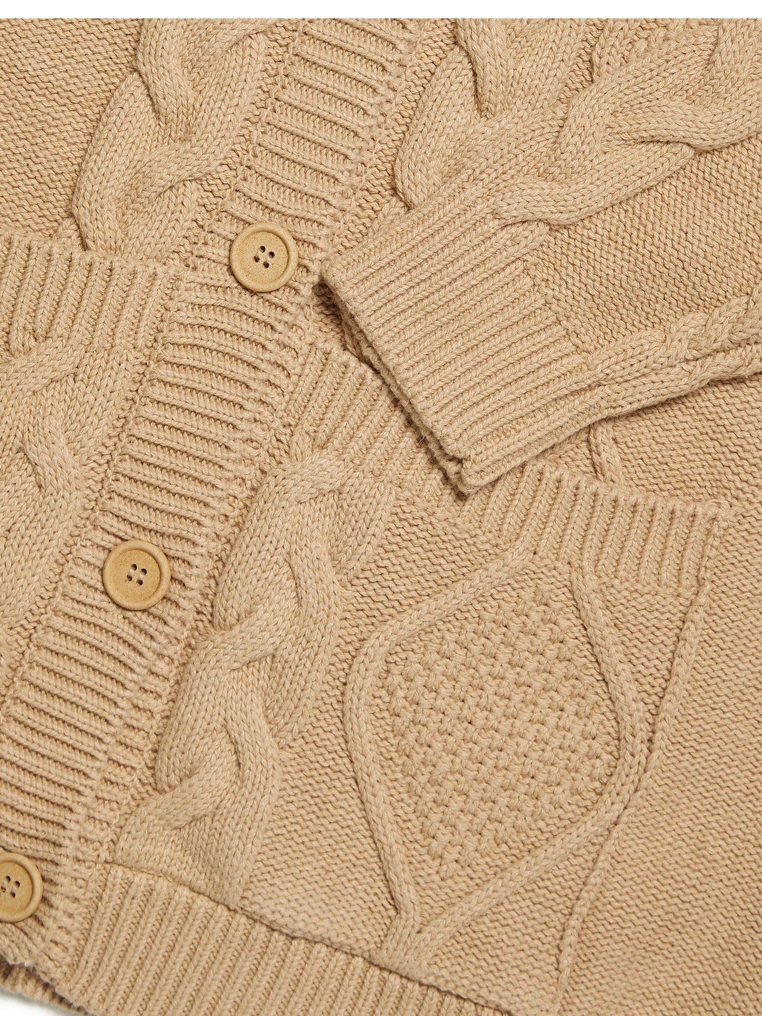 Our Hooded Button-Up Knitted Cardigan is the perfect mix of comfort and style, crafted in Italy using a blend of sustainable and recycled materials. With its cozy cable knit design and generous hood, this cardigan is ideal for layering on chilly days. Thoughtfully made in small batches, it’s both practical and stylish, offering a relaxed fit with a timeless look you'll love to wear.